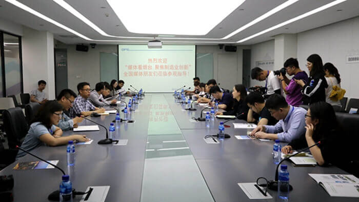 6月11日下午,由烟台市委宣传部、市委网信办指导,烟台市工业和信息化局、山东省互联网传媒集团大众网主办,烟台大众网承办的“媒眼看烟台·聚焦制造业创新”2019全国媒体烟台采风行活动走进金年会电子,参观、学习、报道我公司近年来在创新方面取得的成绩。