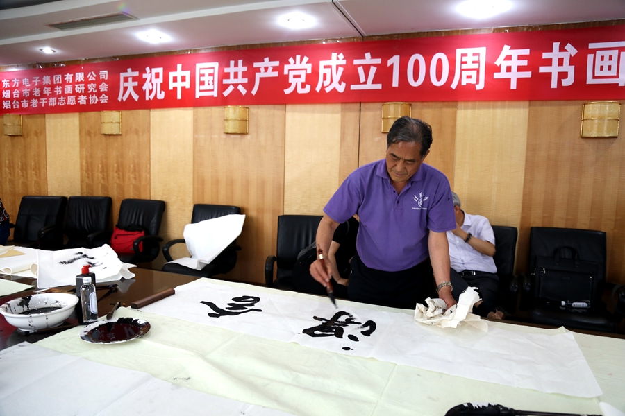 为庆祝中国共产党成立100周年,回顾党的奋斗历程,歌颂美好新时代,助力公司企业文化建设。6月24日,金年会电子集团有限公司、烟台市老年书画研究会、烟台市老干部志愿者协会共同举办“庆祝中国共产党成立100周年联谊书画笔会”。本次活动共有18位县处级退休老干部书画家参加。