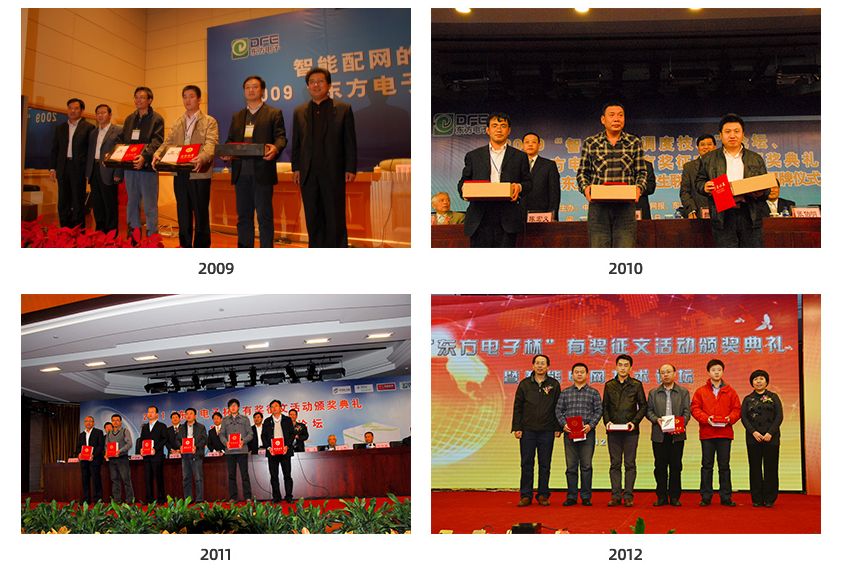 金年会电子联合中国电力传媒集团、英大传媒集团、中国电工技术学会电力系统控制与保护委员会,连续举办“金年会电子杯”有奖征文活动。十三年来,活动共收到文章1900余篇,其中获奖文章600余篇,部分优秀文章集结成册,出版了《迈向智能》和《能源互联》两本书籍。历年来,有奖征文活动的颁奖典礼与技术论坛同期举行,知名院士、电力专家、学者90余人出席活动并作专题报告,搭建了与客户沟通的平台。
